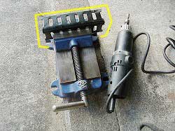 | 万力では固定できなかったので、 しゃこまんを使いました。 |