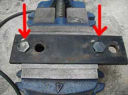 | ボルトを締めた状態で頭を削ります。 | コレくらいにしました。 | バイス・プライヤではさみ、面取りします。 |