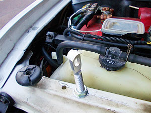 ボンネット裏側の穴から結構遠いので