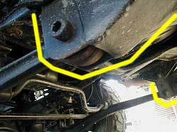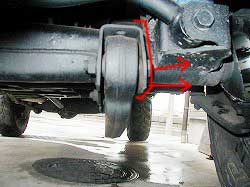 ブラケットの装着は、ミッション・メンバー(ミッションを支えているフレーム)の取り付けボルトと |
