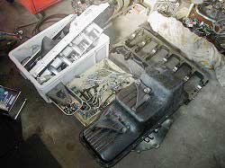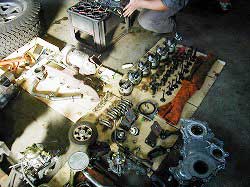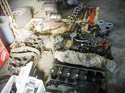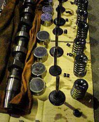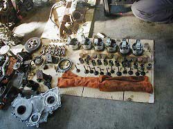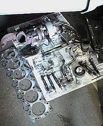| ヘッドまわりを外したところ。 | カム・シャフト。 | タービン、インジェクションなどなど。 |