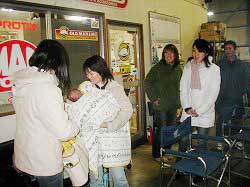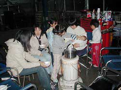 | 鍋の準備中。 | 具の下ごしらえをやってくれていた女性軍! | |