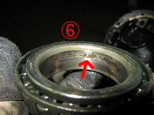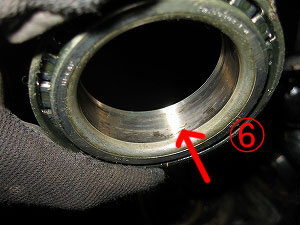 インナー・ベアリングの内側は、全周に渡って傷が付いてました。 |