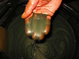 オイルの粘度は残っていて(当然か。)、光るものがいっぱい…。 |