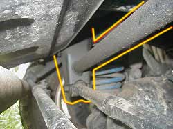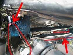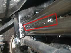← 純正の補強に抱き合わせて 溶接してあります。 今回入れた補強のパイプは 貫通して外側のブラケットに 溶接してあります。 |