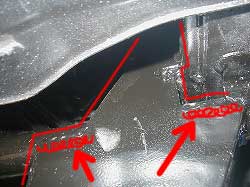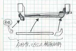 | 純正の補強に抱き合わせる形で斜線のように補強を入れることになりました。 | |