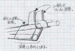← 赤い部分が補強している 箇所です。 |