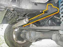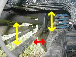| 前側はラテラル・ロッド、後ろ側はホーシングが 動きます。 ホーシング自身、ブッシュの変形などにより 多少前後することも考えられます。 |