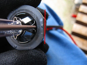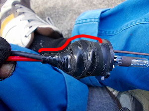 こんな感じで、自己融着テープで塞いでみました。 |