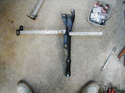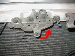 | 赤い部分にあった補強を抜きます。 | コレが抜いた補強(黒部分)。 両サイドのアルミは各クーラーの ステーだった部分です。 |