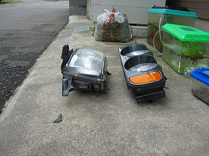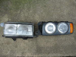 ライト枠に、丸目を取り付ける形にすれば、加工が簡単そう。 |