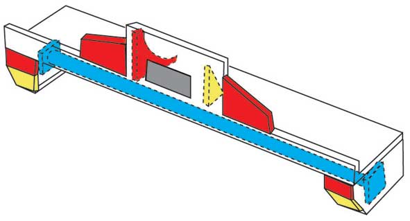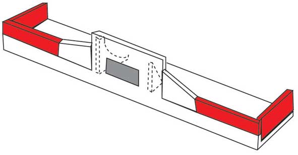 赤部分、黄部分の鉄板を溶接し、 前側を囲うことによって 強度を増やします。 |