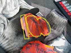 | この部分にもブレーキ・グリスを塗るといいんですね。 実際、当たっているので塗料が剥げてます。 |