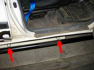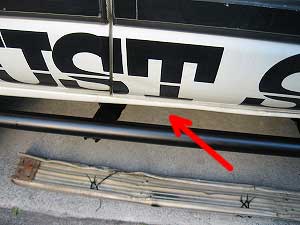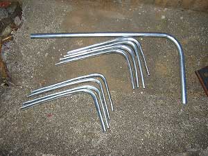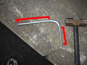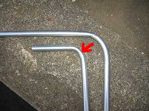 | 普通は上のようにRを作って曲げます。 でも、直角にしたかったので 潰しながら曲げました。 (赤矢印部分、潰れてるのわかります。) |