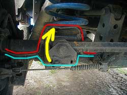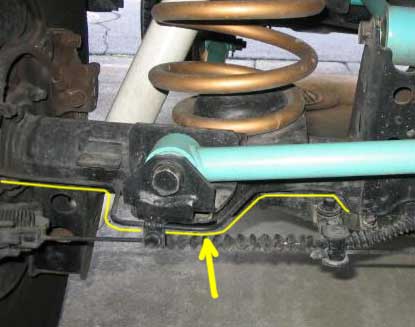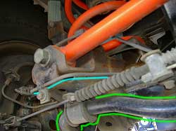 | ブレーキ・ライン(水色)に対し スタビライザー(黄緑)があると 下からの岩なんかは防いでくれますね。 |