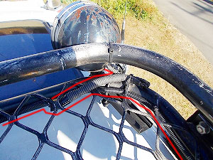 赤線のように配線をコルゲートチューブで覆い、 |