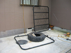 真ん中に穴を開け、ボルトで固定してあります。 |