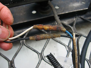 | 赤矢印が端子部分。 水色矢印が水切り部分。 |