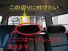 後ろのシートの真ん中は本来ヘッドレストがなくて ラダーに付けてもよかったのですが、 |
