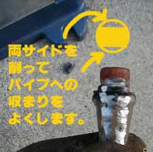 ダストストームの松永さんからのアドバイスでステーにパイプを溶接し、