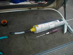 | ステーが曲がってきて サイド・シルの上側が凹まないように パイプを入れてみました。