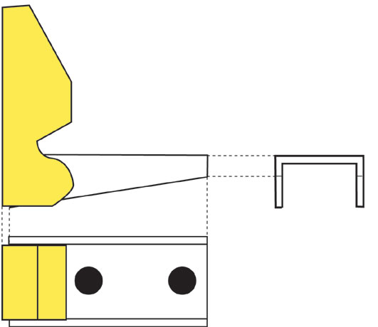 純正金具を赤線部分でカットするように考えてみました。 |