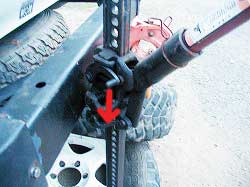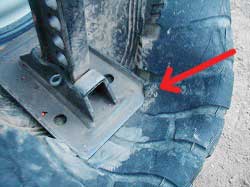 | なるべくビードの付け根部分に当たる ようにハイリフト・ジャッキを入れます。 |
