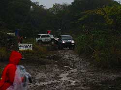 | 出場者の一部と、四駆以外の車の駐車場が写っています。 |