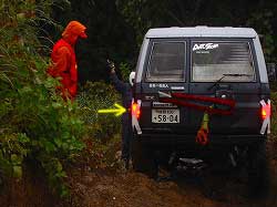 | 結構怖いですね、ココは。 雨も激しく路面はヌルヌル…。 |