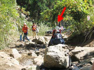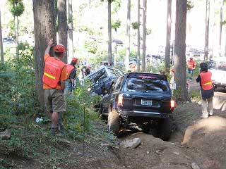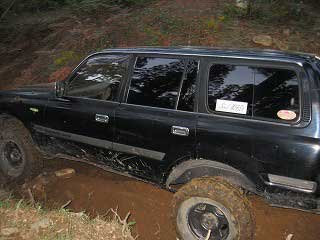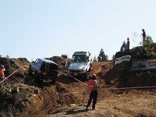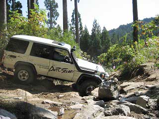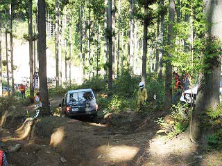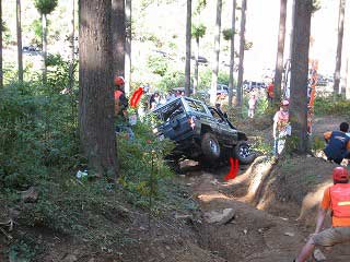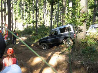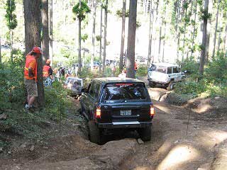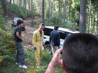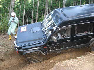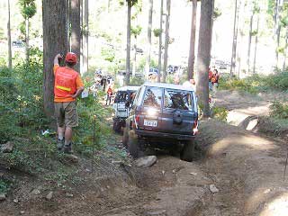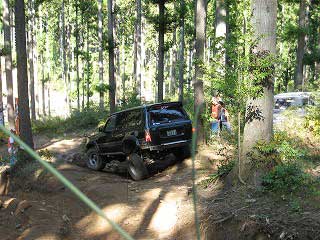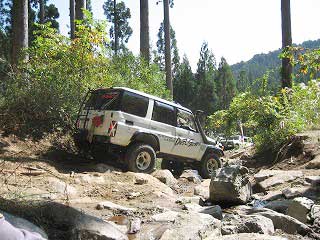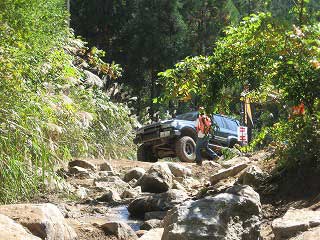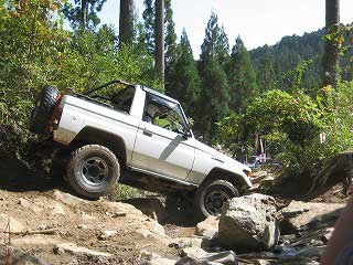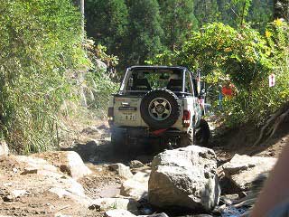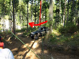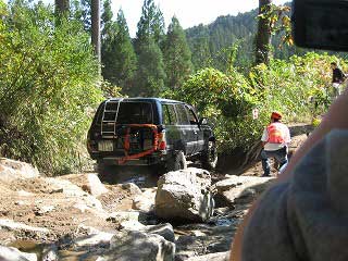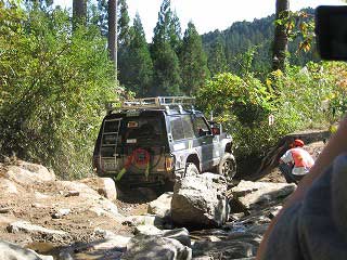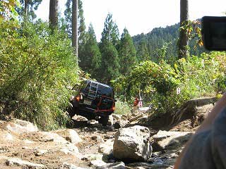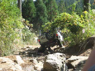 リヤ・バンパーが岩に引っ掛かっていましたが、 強引に引っ張り上げ、無事に抜けました。 見ていたおいら達もホッとしました〜。 |