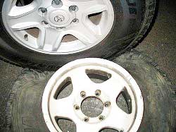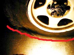 | 80は重いので、きれいにタイヤが つぶれています。 |