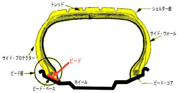 チューブがないため、空気の気密は、ホイールとタイヤのビードが