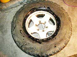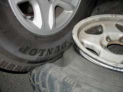 こんな感じでタイヤの上に乗せて、ビードを落としました。 |