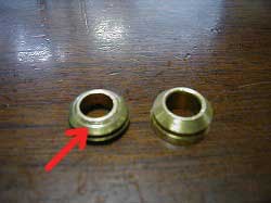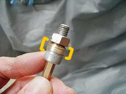 | 黄色の部分が銅ワッシャ(2枚)。 この状態で目いっぱいまで削ります…。 |